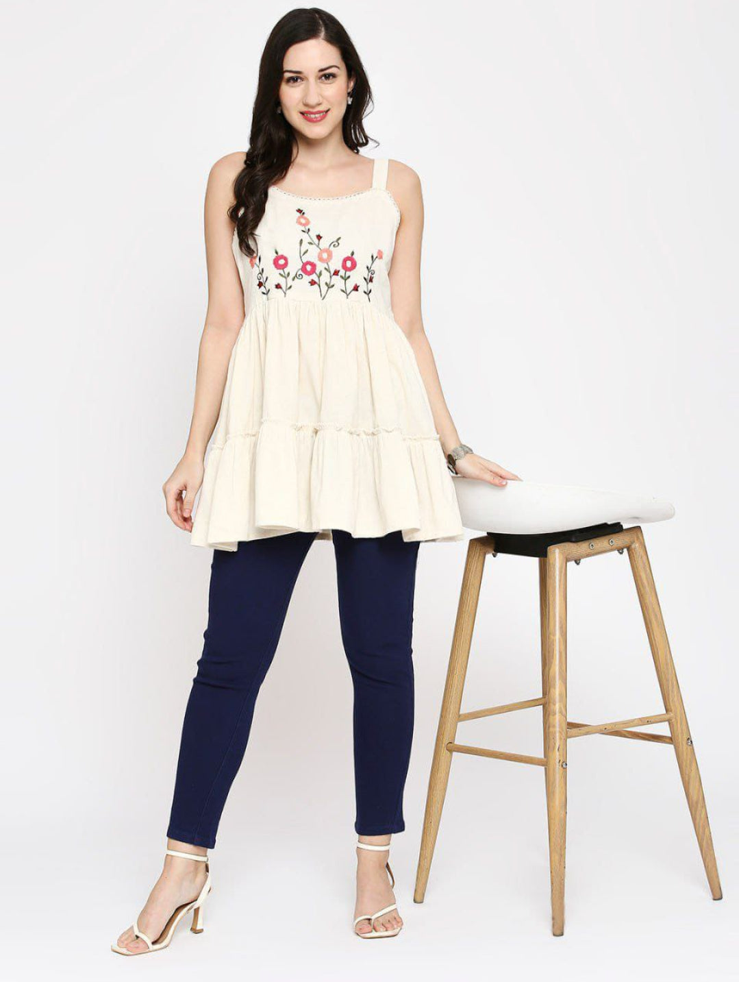 As a Top: Style it with fitted jeans or cigarette pants and block heels for a fusion vibe.
