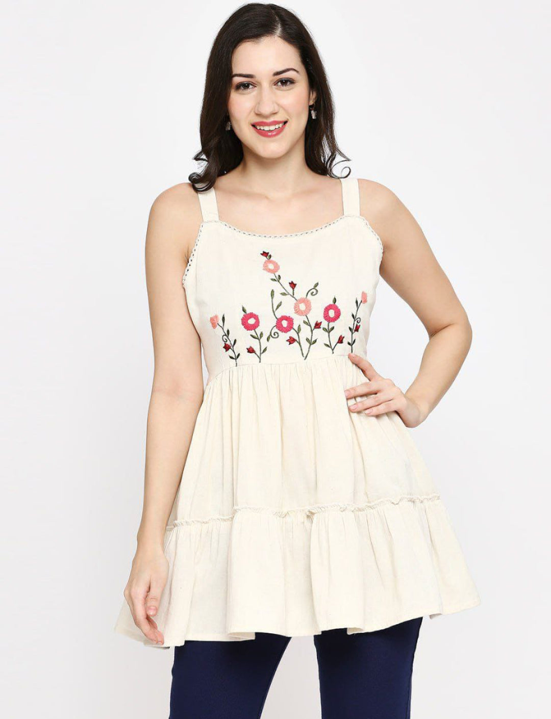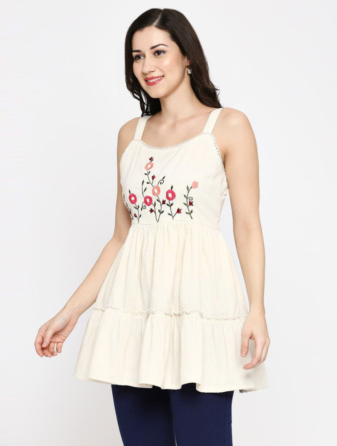 Blossom Breeze | Hand-Embroidered Cotton Tunic