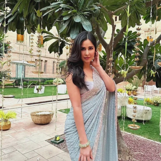 Celebrity-Inspired Sky Blue Saree | Katrina Kaif Replica | Festive & Party Wear