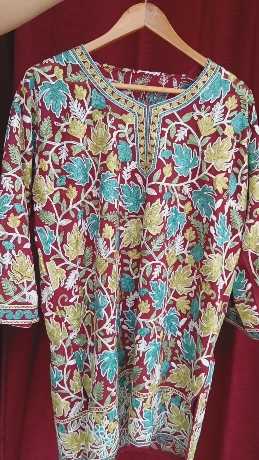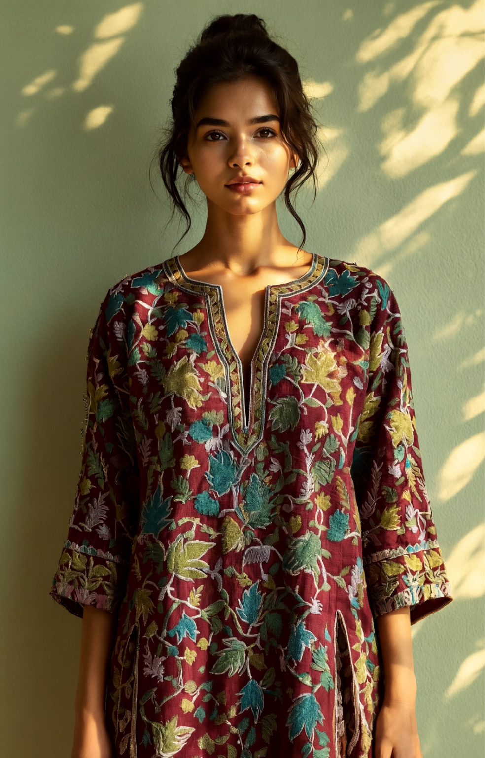 Chinar Charm Kurti – Handcrafted Aari Embroidery by Kashmiri Artisans | Elegant Ethnic Wear | #VocalForLocal
