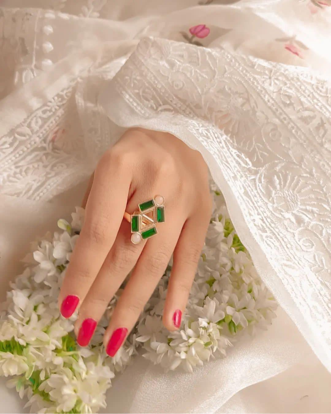 Pair it with jhumkas or pearl chandbalis, a sleek bun, and a silver choker for a refined ethnic look. Go with soft dewy makeup and a bindi for a classic appeal.