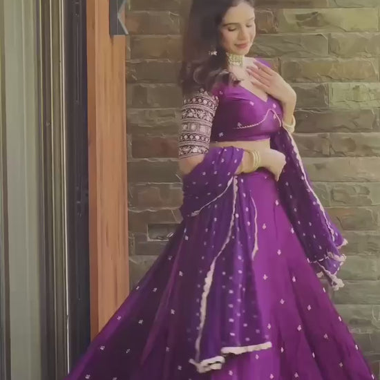Soocha Satin Silk Lehenga Set with Sequin & Thread Work | Semi-Stitched