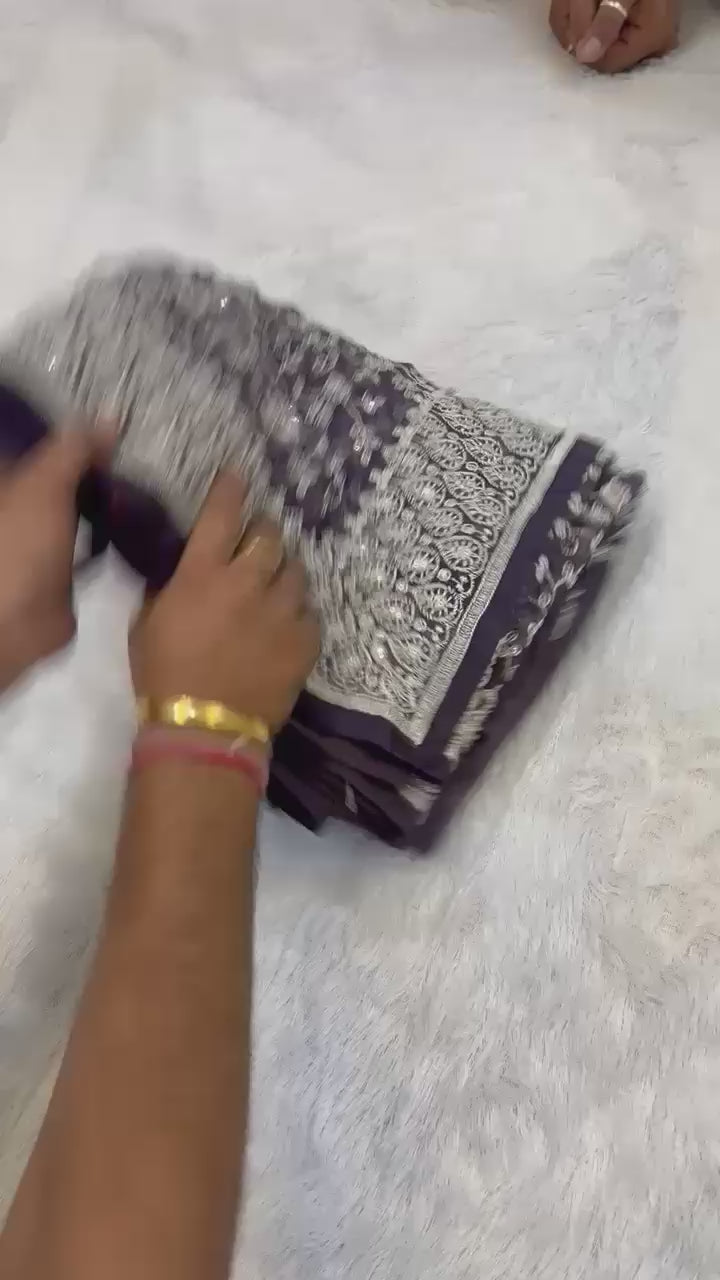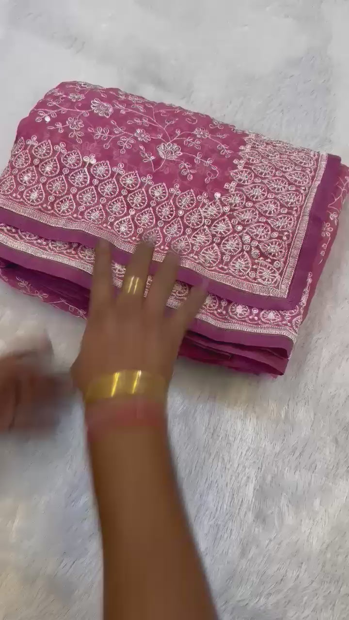 Zehra Mirror Work Chikankari Saree- PINK & Purple GREY